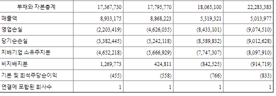 | 순이익 | -5,242 (백만원) | 자본금 | 5,109 (백만원) |