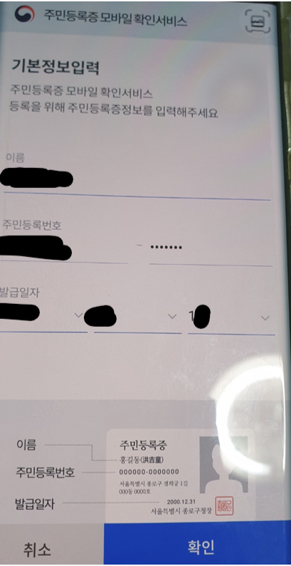 #주민등록 모바일 확인서비스를 누르고 하라는대로 하면 된다.