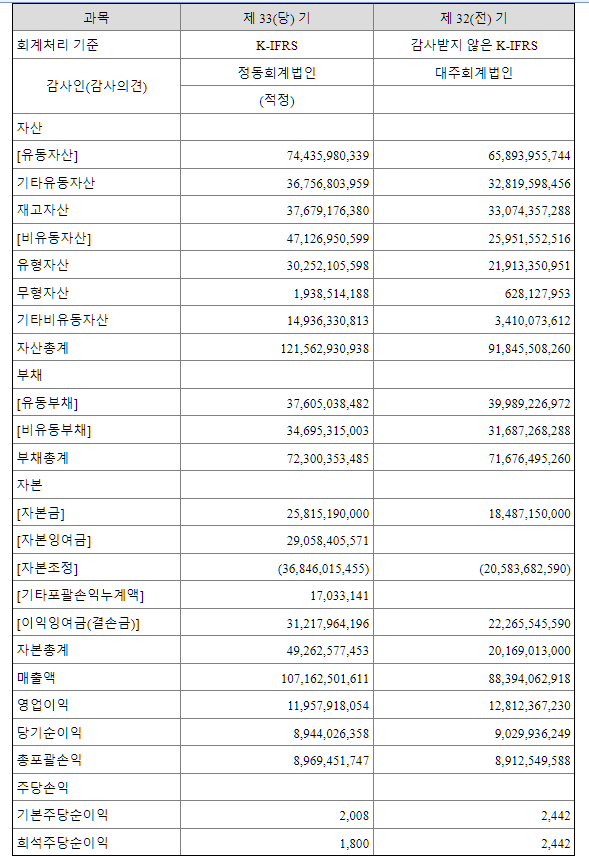 | 순이익 | 9,030 (백만원) | 자본금 | 20,169 (백만원) |