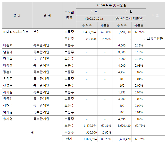| 최대주주 | 나라로지스틱스 69% | ||