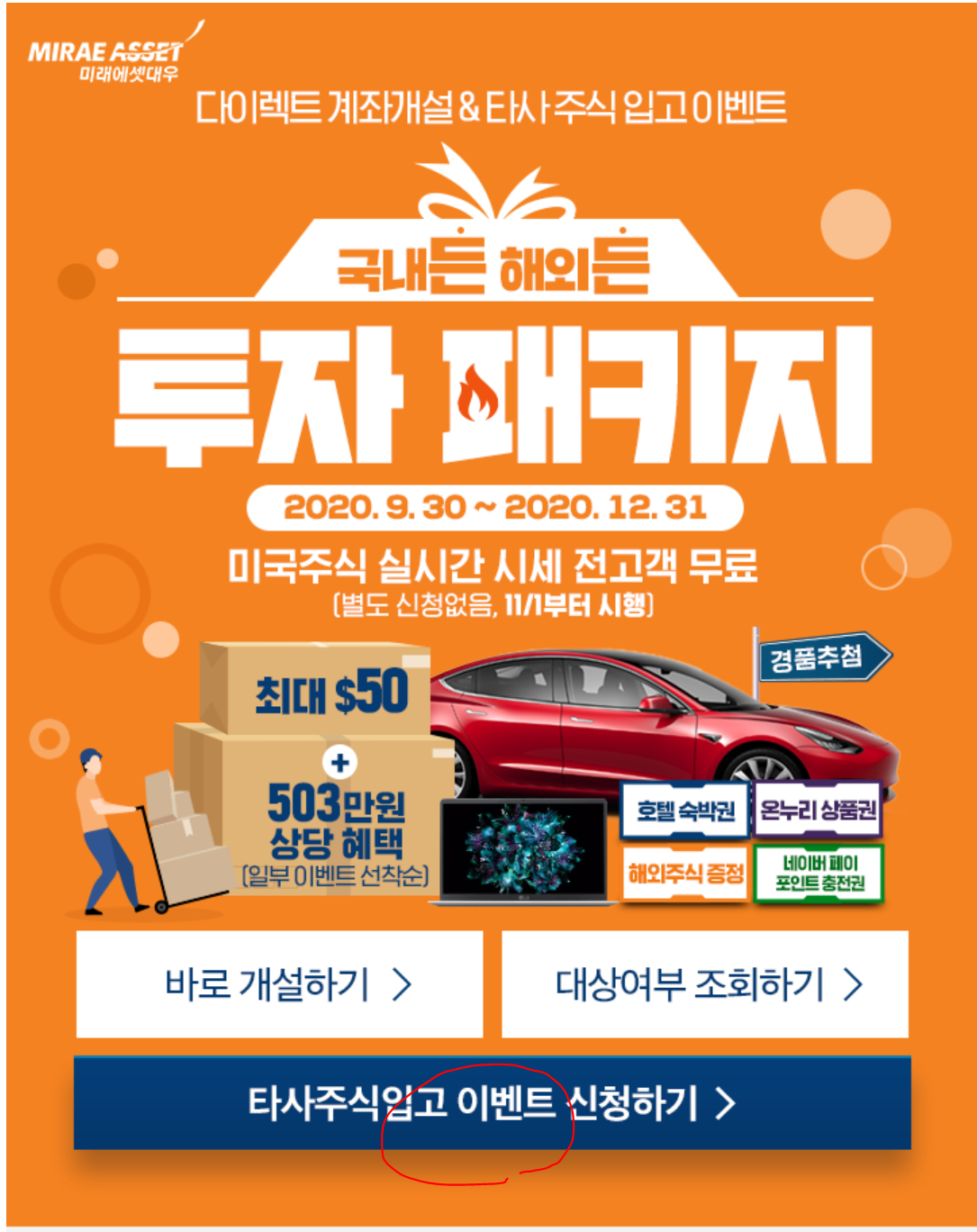 우선 미래에셋대우 증권의 타사대체 입고 이벤트야
