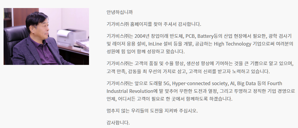 | 홈페이지 | www.gigavis.com | 대표전화 | |