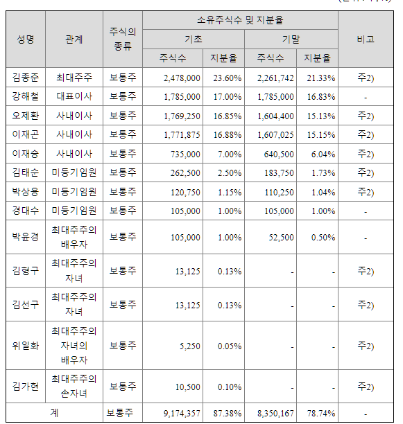 상속 이슈는 나중에 주의 대주주 지분이 좀 적네