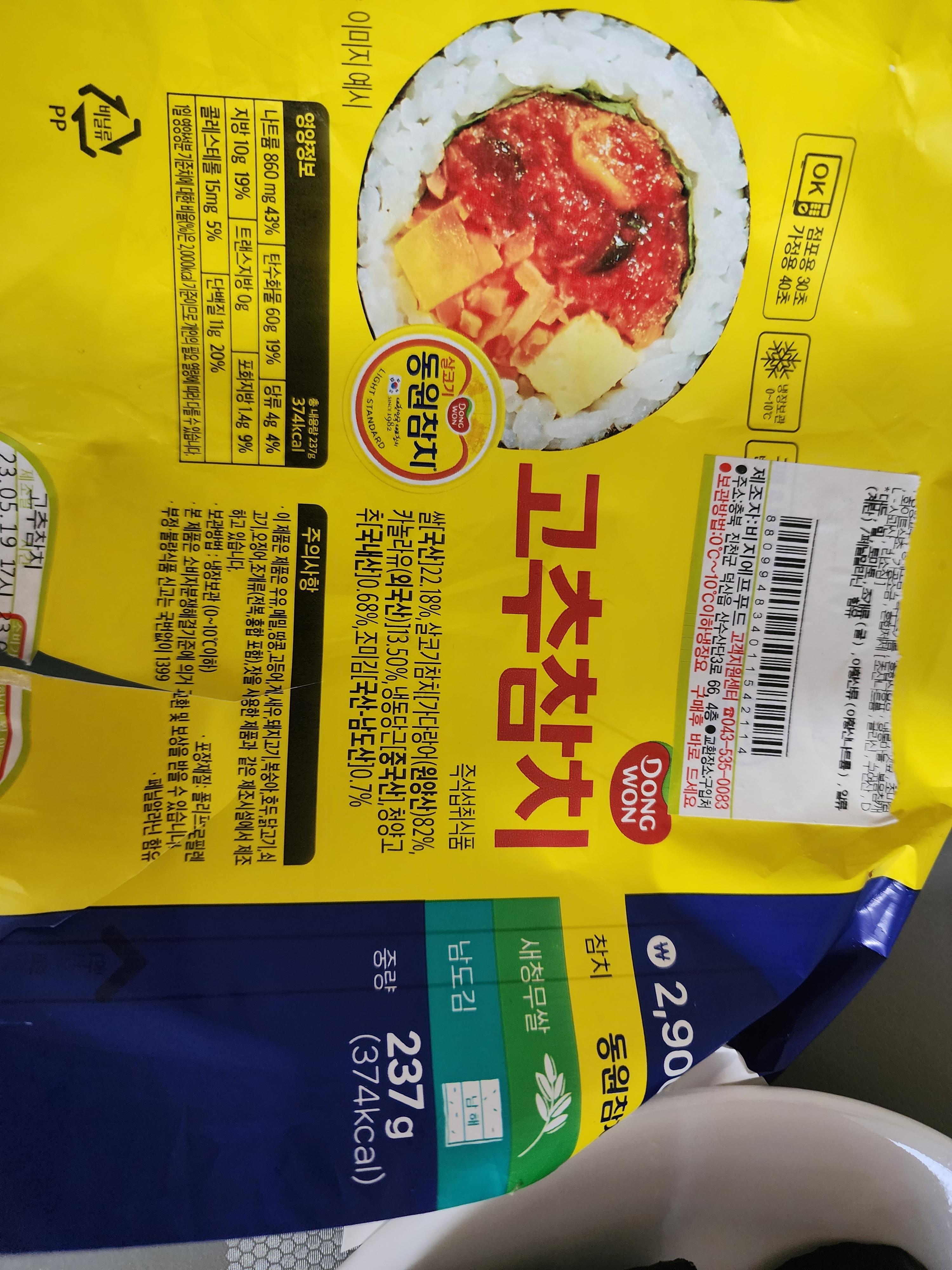 CU동원 고추참치 김밥있길래 사봤다.