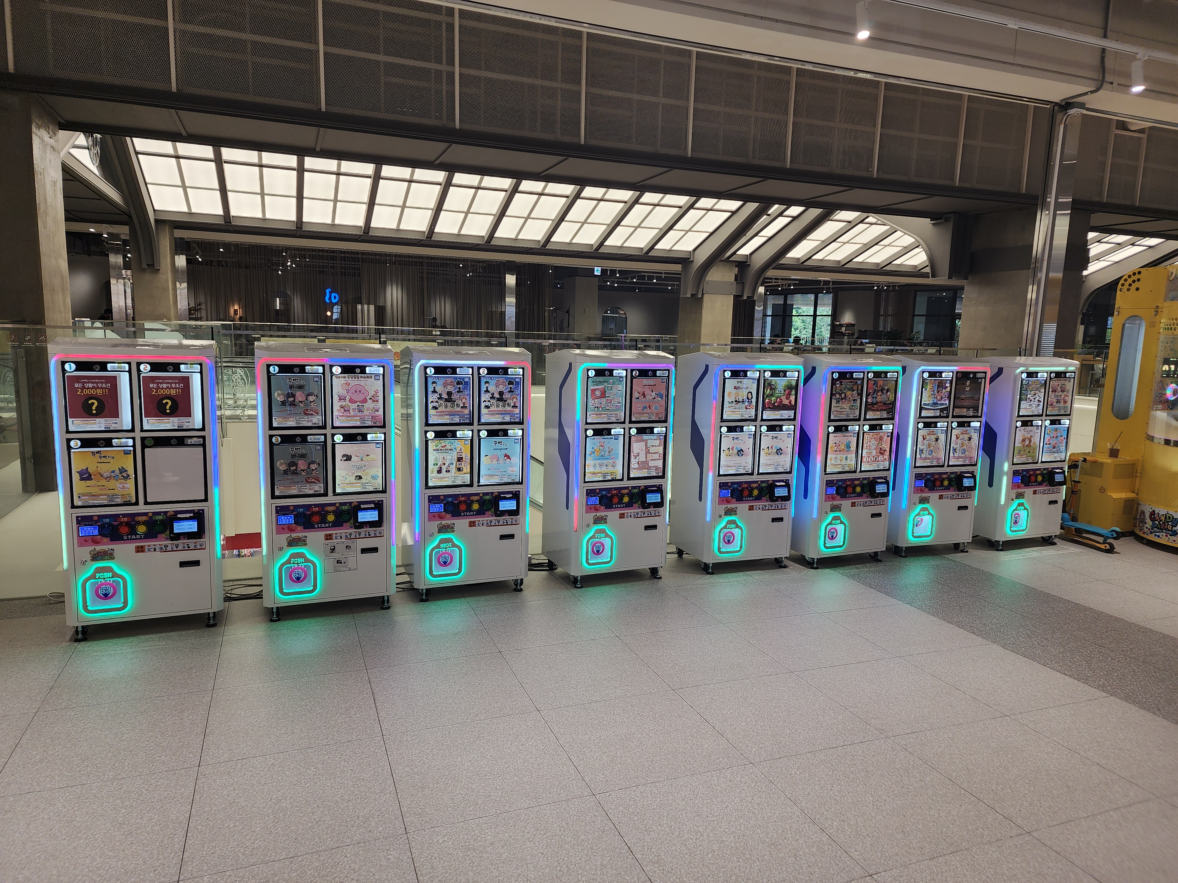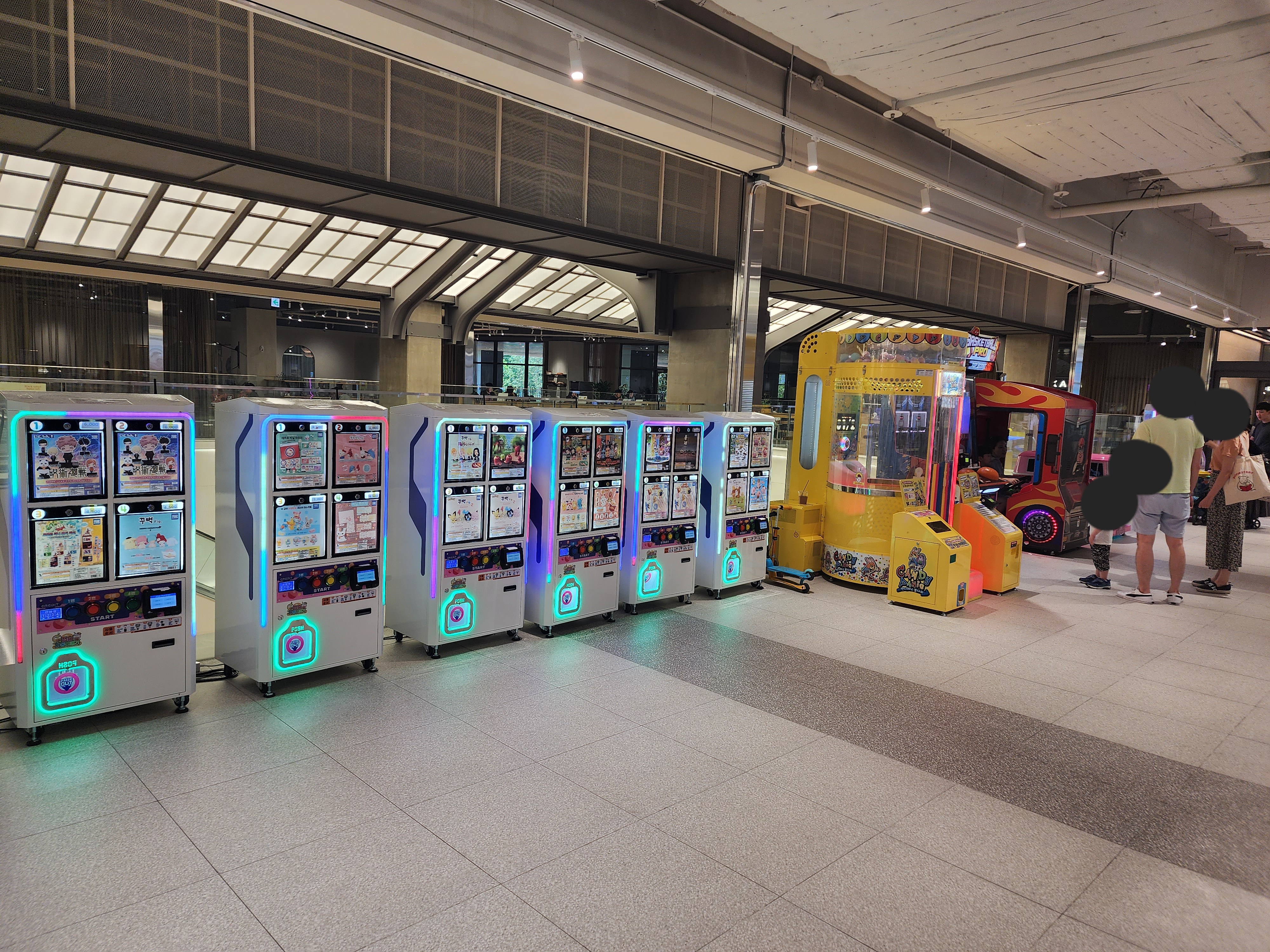 #2층 장난감가게 앞에 오락기도 있는데 사람들이 많이 하고 있다.