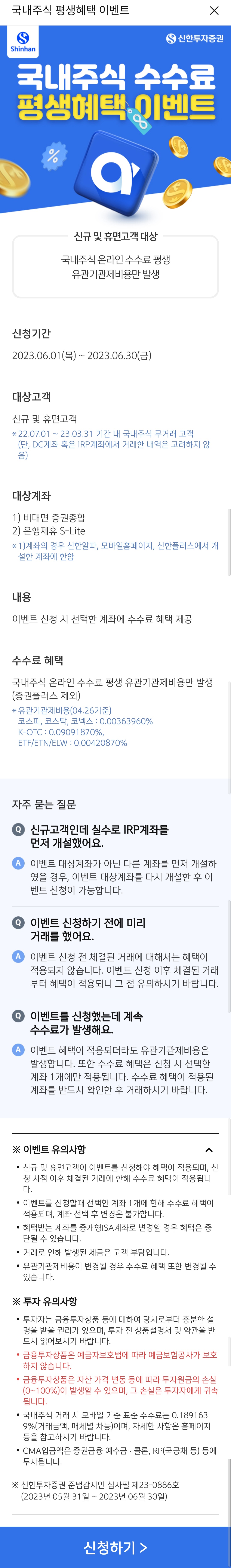 #신한투자증권 #미성년자 #비대면 계좌개설 이벤트 & #국내주식 수수료 평생무료 이벤트