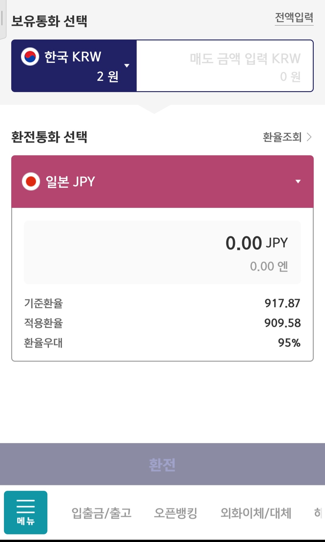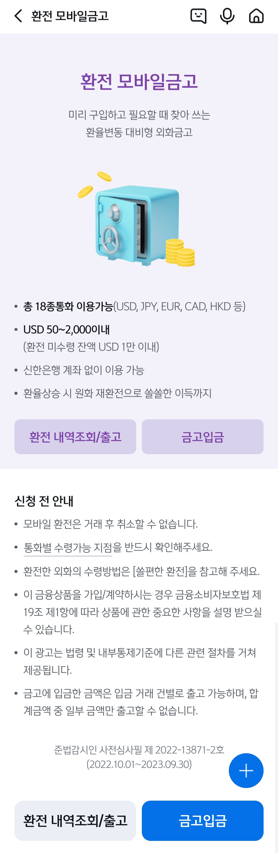 #신한모바일 금고 90% 환전우대 910.88