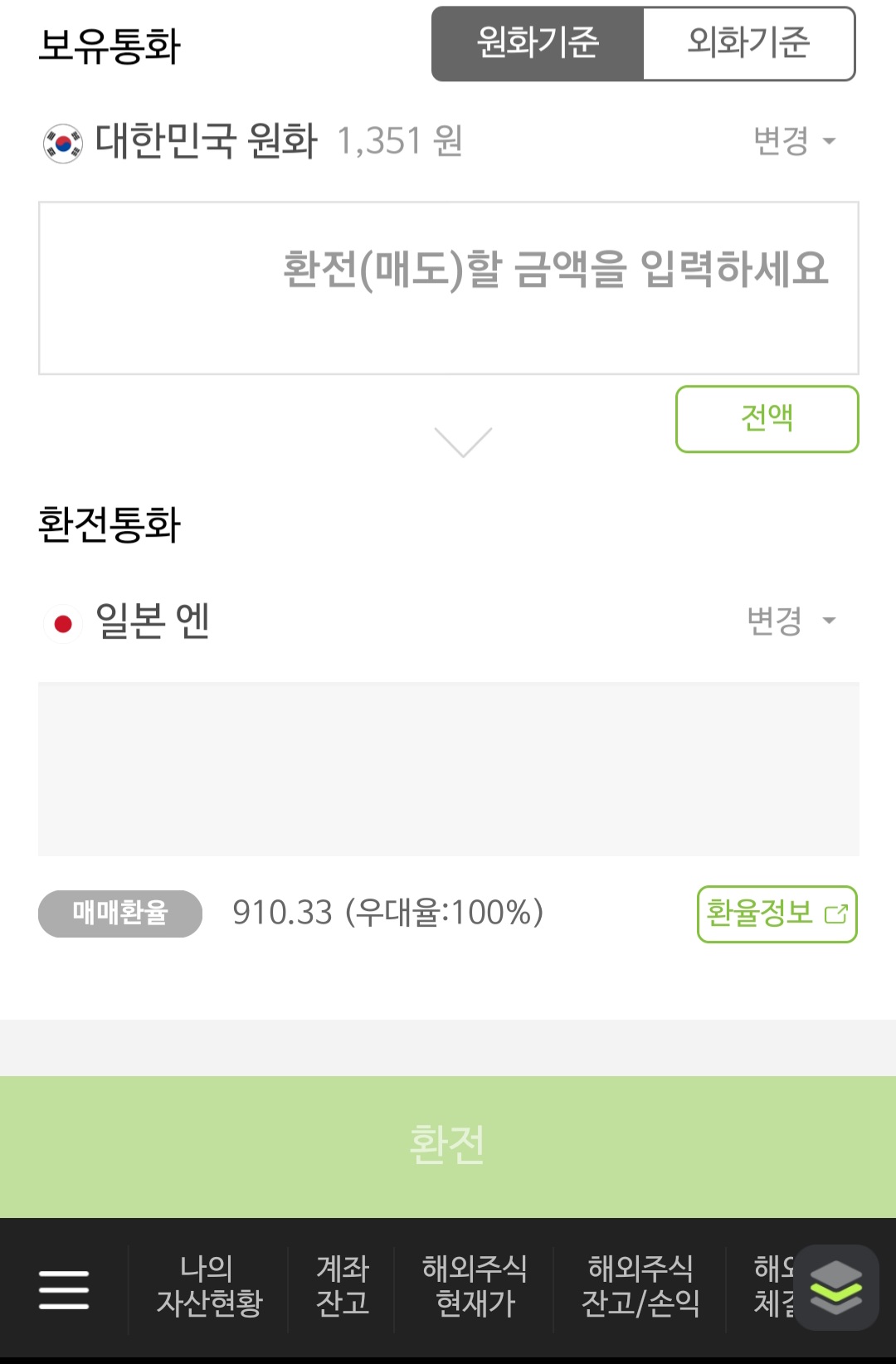 마지막 NH증권 100%환율우대라고 해서 봤는데 100엔당 910.33원