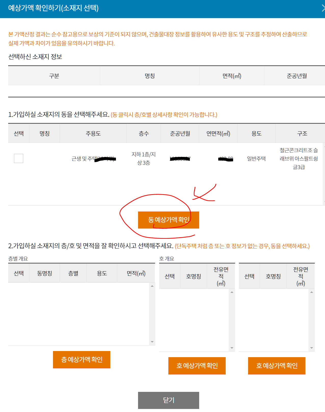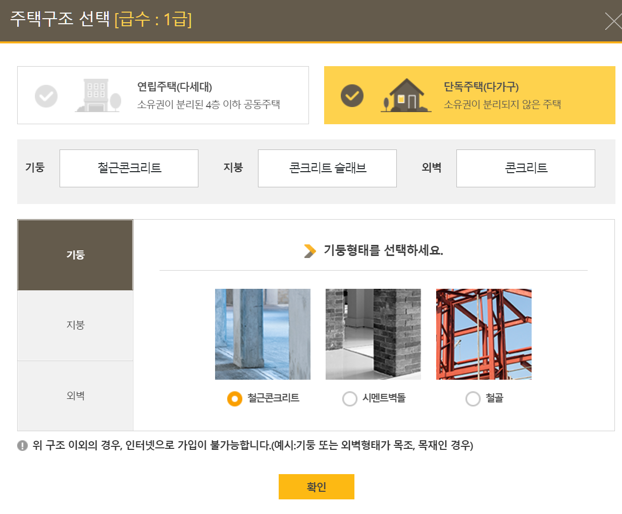 2. 주택구조 선택하기(철근콘크리트인지, 벽돌인지 목재인지등..)