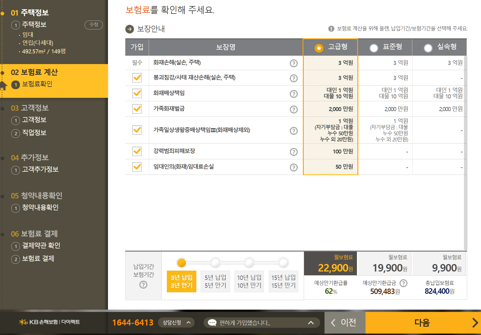 이렇게 선택을 했으면 나머지 특약을 선택할수 있다.