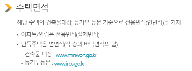 3. 주택면적 또는 평수 선택하기 (전용면적,연면적)