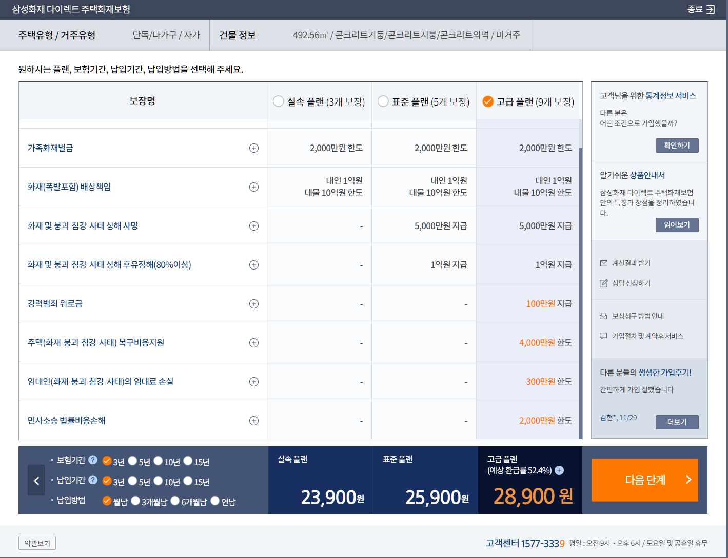 화재손해보험 다이렉트 보험가액 주택은 3억한도로 가입을 받는다(여기서부터가 보험사의 양아치같은 면이 보인다.)