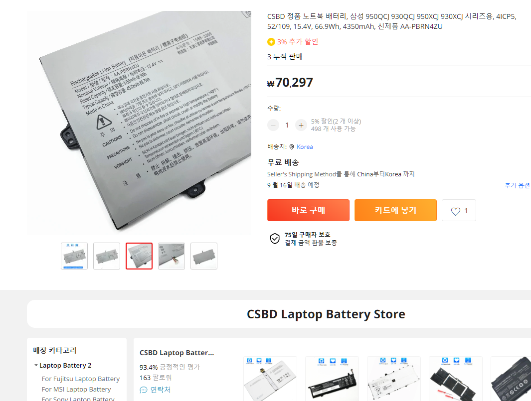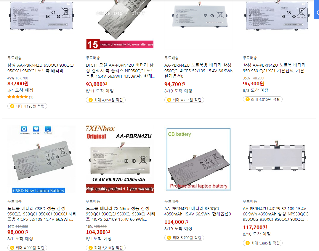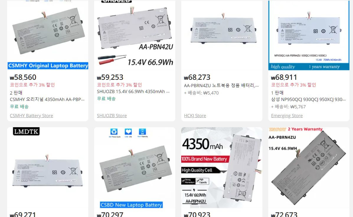 쿠팡에서 검색한 가격 후덜덜 하다. 서비스센터에서 정품 배터리를 사도 115000원이란다