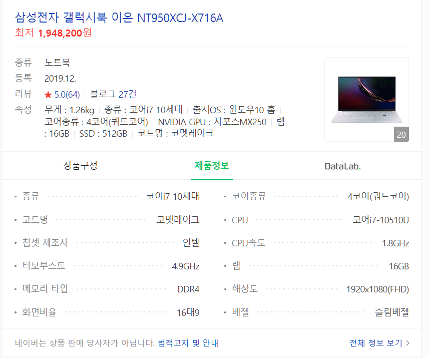 갤럭시 북 이온(NT950XCJ-X716A) .. : 네이버블로그 (naver.com)