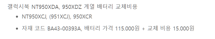 서비스센터에 전화해보니 총 13만원이라고 한다.(배터리 115000원 공임비 15000원)