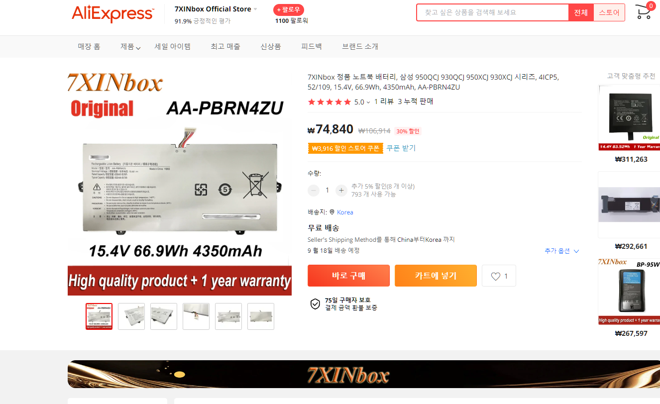 여기가 피드백도 91% 긍정평가고 팔로우도 많아서 여기서 구매하기로 함.