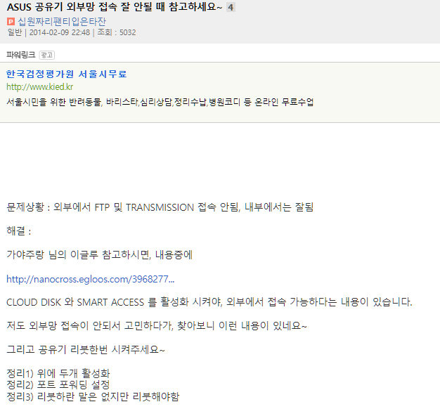 이걸하면 집 외부에서 skynet.asuscomm.com에 접속하면 내집의 공유를 접속할수 있는거다.
