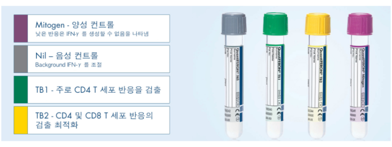 ·회색 튜브 (Nill)- 평상시 존재하는 인터페론 감마 수치(결핵이랑 상관없이 존재하는 수치, 너무 높으면 안됨)