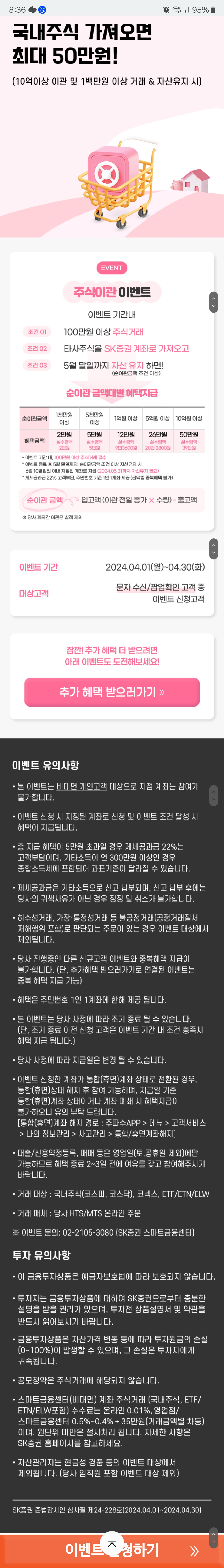 sk증권 국내주식 타사대체입고 이벤트 (~4월 말까지) 참여